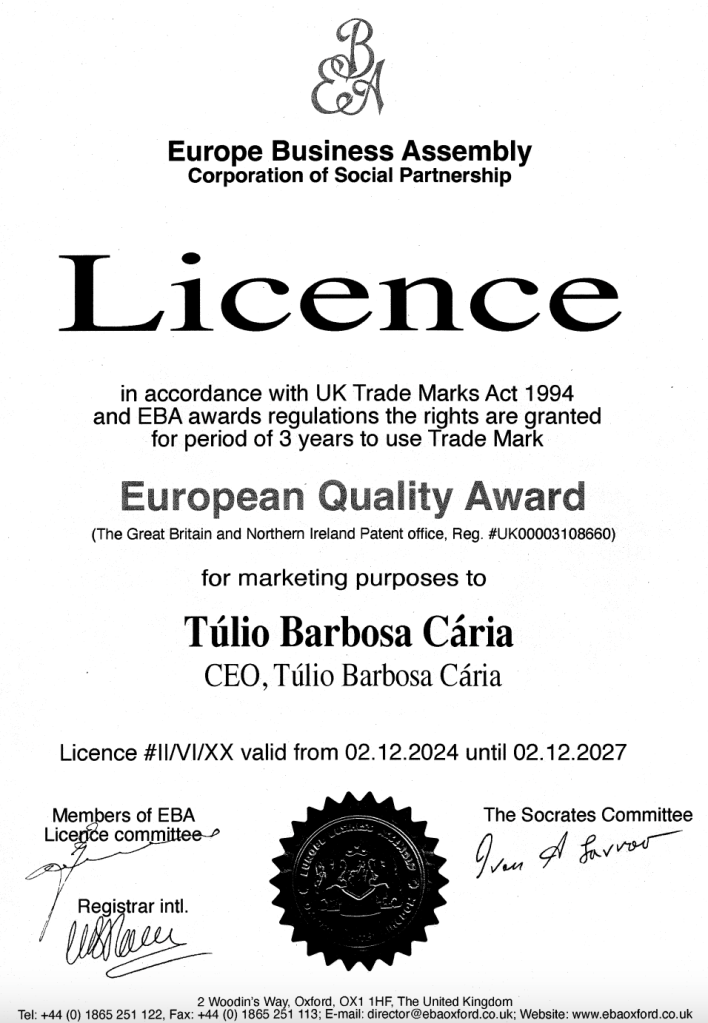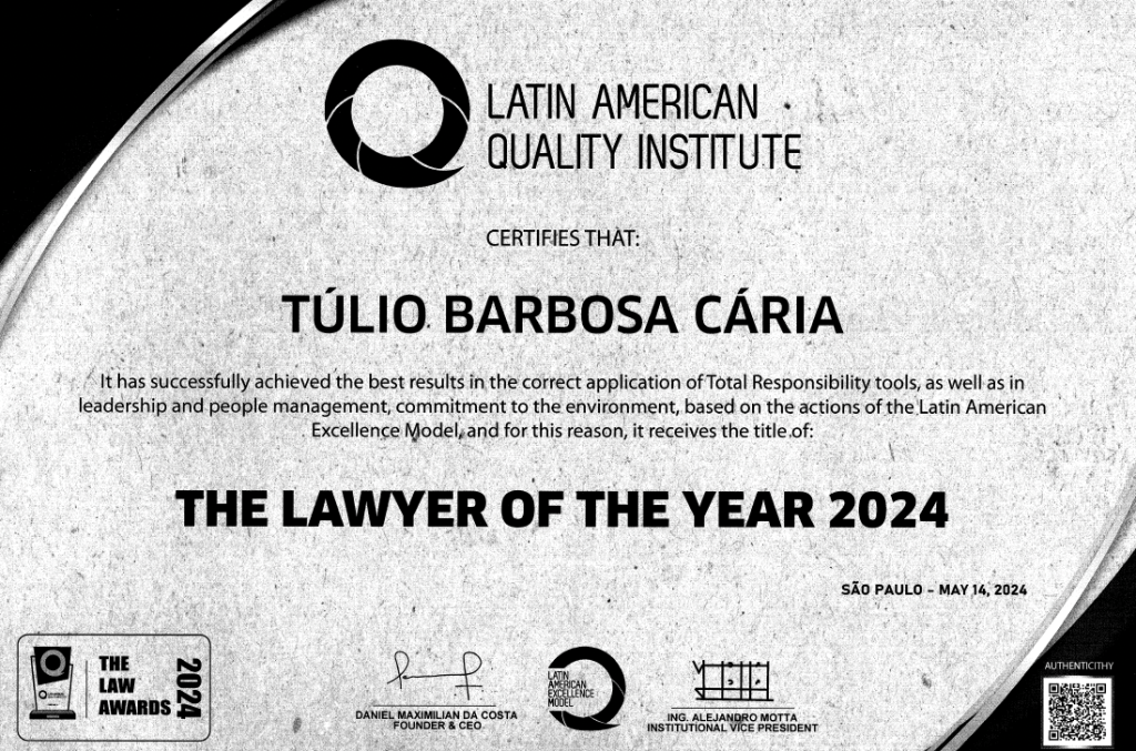 Premiado pela Universidade de Oxford (European Quality AwardTM) e pelo Latin American Quality American Quality Institute (LAQI), o Escritório foi reconhecido com o Comprometimento, Qualidade Total e Excelência Jurídica.